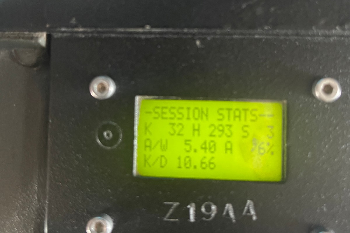This is what’s shown on the screens on all guns. This particular screen is from a spitfire. You can tell because of the amount of chips, scratches and dirt on the gun – at least one per day is dropped onto gravel or grass. The screens can be cycled using the red or black button (with the exception of the first image).